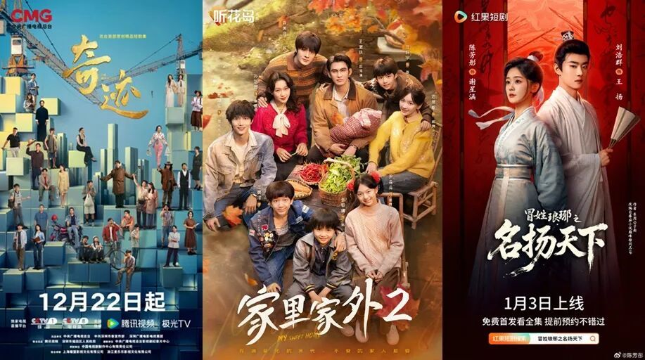 从左至右:《奇迹》《家里家外2》《冒姓琅琊之名扬天下》海报