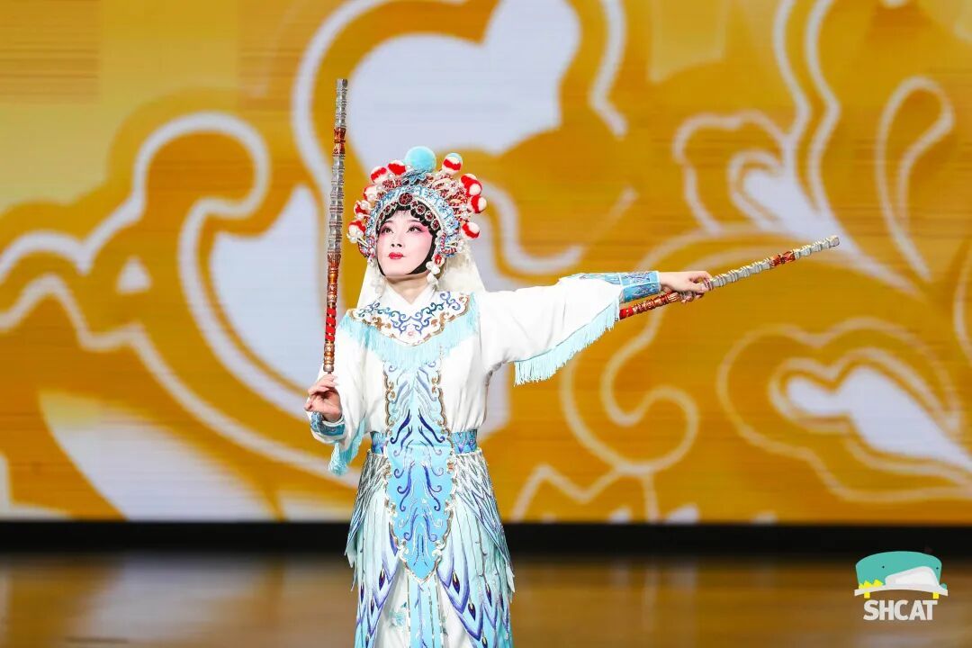 本次演出汇聚顶尖力量,由3位国家级非遗传承人、4位梅花奖及牡丹奖得主组成“国家队”级阵容:“中原美猴王”孙敬朋演绎的豫剧《闹天宫》展现“一心四用”等高超技艺,小朋友看完后兴奋地说“比动画片里的孙悟空还厉害”;肖桂森呈现两千余年历史的古彩戏法,每次变出金鱼蟠桃总能引发全场“哇”声一片;川剧变脸瞬息间尽显巴蜀神秘,蒲剧硬功昂扬山西民间气魄,黄梅戏《女驸马》则唱响江淮经典旋律。上海评弹团名家高博文、陆锦花更开启“随机点歌”模式,即兴演绎经典诗词,引发全场孩子齐背古诗的热烈场面。