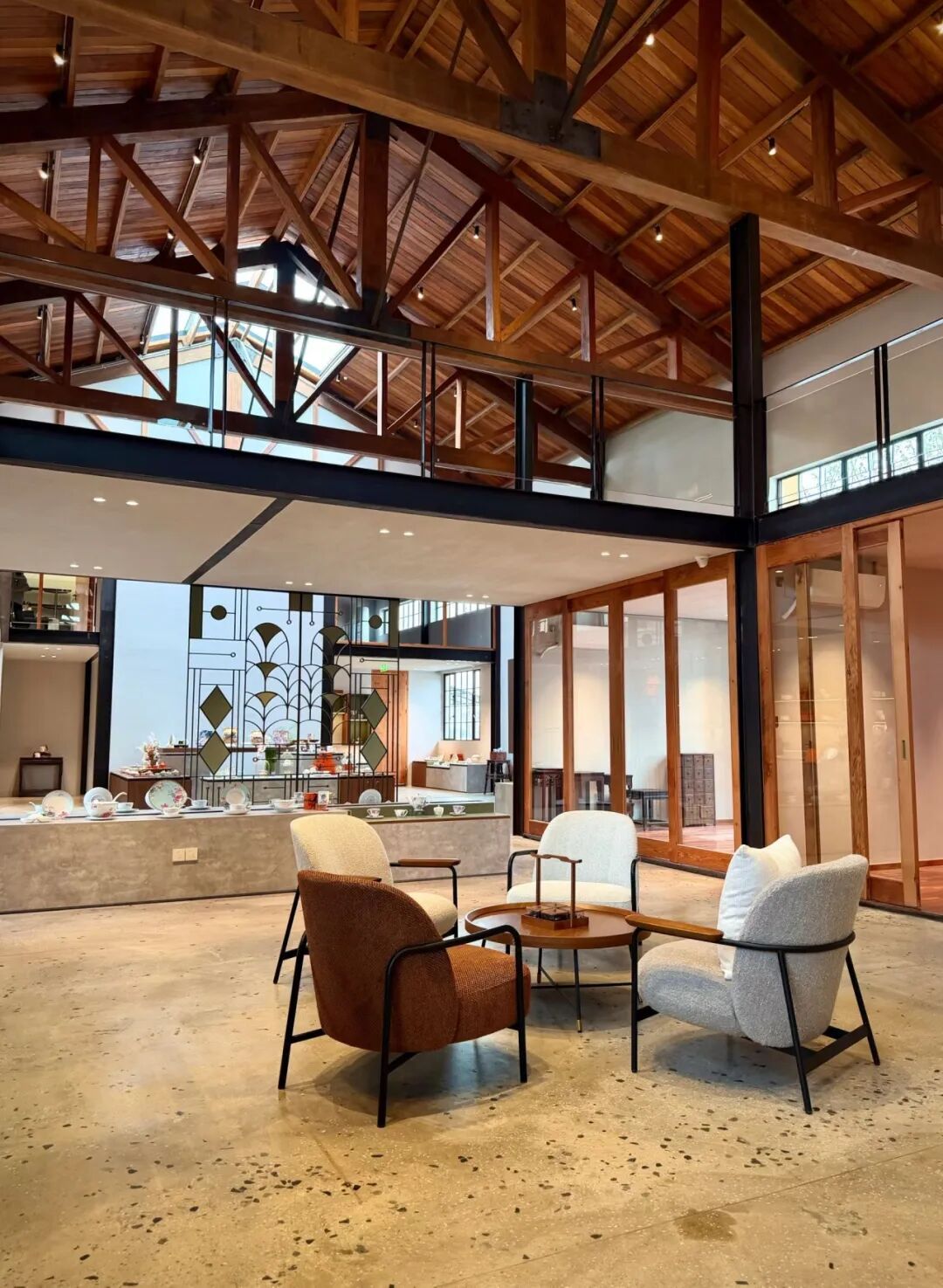 如果说前几家店承载着年轻与在地,那么玛戈隆特(M.Goldtouch)则带来了极致的优雅与传承。作为曾服务于APEC等国际盛事的国宴瓷品牌,玛戈隆特首家旗舰店入驻崇明,选址M515文创产业园。