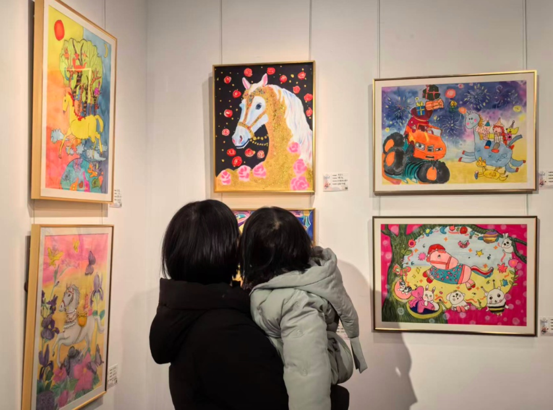观展现场,家长带着孩子驻足画作前,细细品读作品旁的创作卡片。孩子们被创意绘画中的趣味元素吸引,叽叽喳喳地分享着自己的发现。“没想到能在新年第一天看到这么有温度的展览,既欣赏了艺术佳作,又感受到了满满的年味。”专程赶来的市民王女士笑着说。