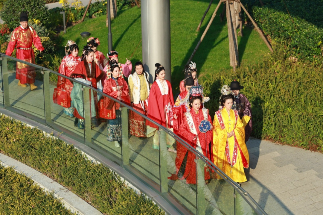 “没想到汉服走在苏州河边这么美!”一位身着唐制齐胸襦裙的参与者笑着说,“每走一步,都像是在和历史对话,也像是在为新年铺一条锦绣的路。”