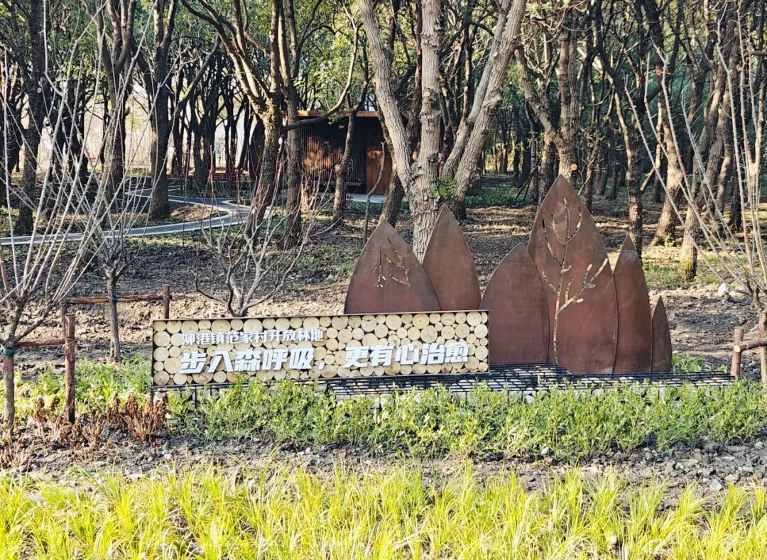 石湖荡镇泖新村开放休闲林地北临拦路港、南至泥龙江、西抵石湖荡中心河、东达泖岛公路,占地119亩,地处黄浦江源头,曾有“江南第一网”等印记,林地以“田园野趣、水乡渔歌”为主题,唤醒人心底的乡愁共鸣,彰显“人水共生”的乡土记忆。林地内枫香、乌桕、黄山栾树、大叶女贞等特色树种错落有致,植物群落丰富多样,四季色彩鲜明。步道蜿蜒、座椅错落,遮荫廊架掩映林间,鱼形休憩节点趣味盎然,是一处远离喧嚣、尽享自然宁静的休闲场所。