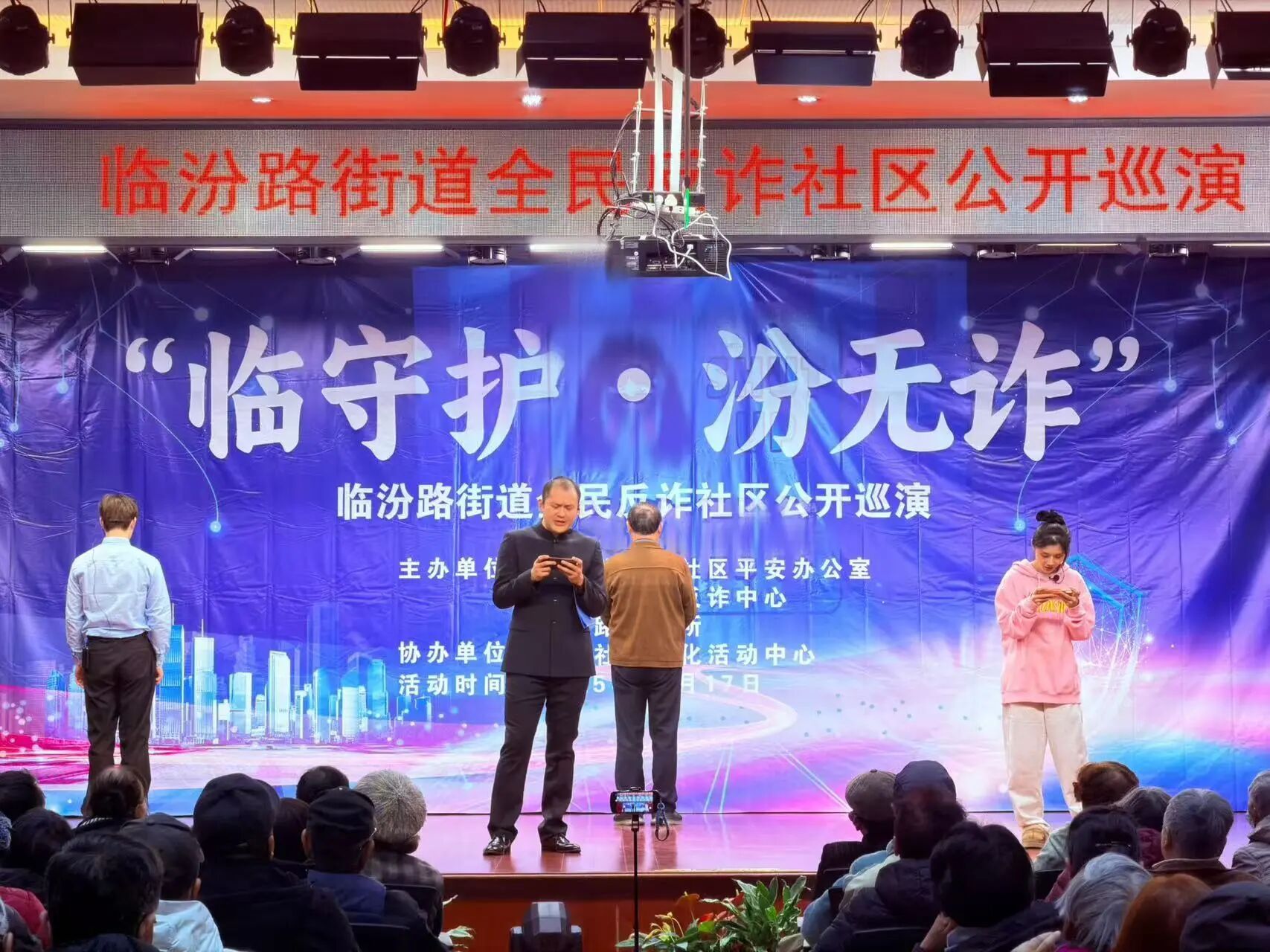 为进一步筑牢社区居民反诈防骗思想防线,提升居民识骗、防骗、拒骗的能力,近日,临汾路街道平安办联合临汾路派出所、临汾社区文化活动中心组织开展了“临守护•汾无诈”全民反诈社区公开巡演活动。