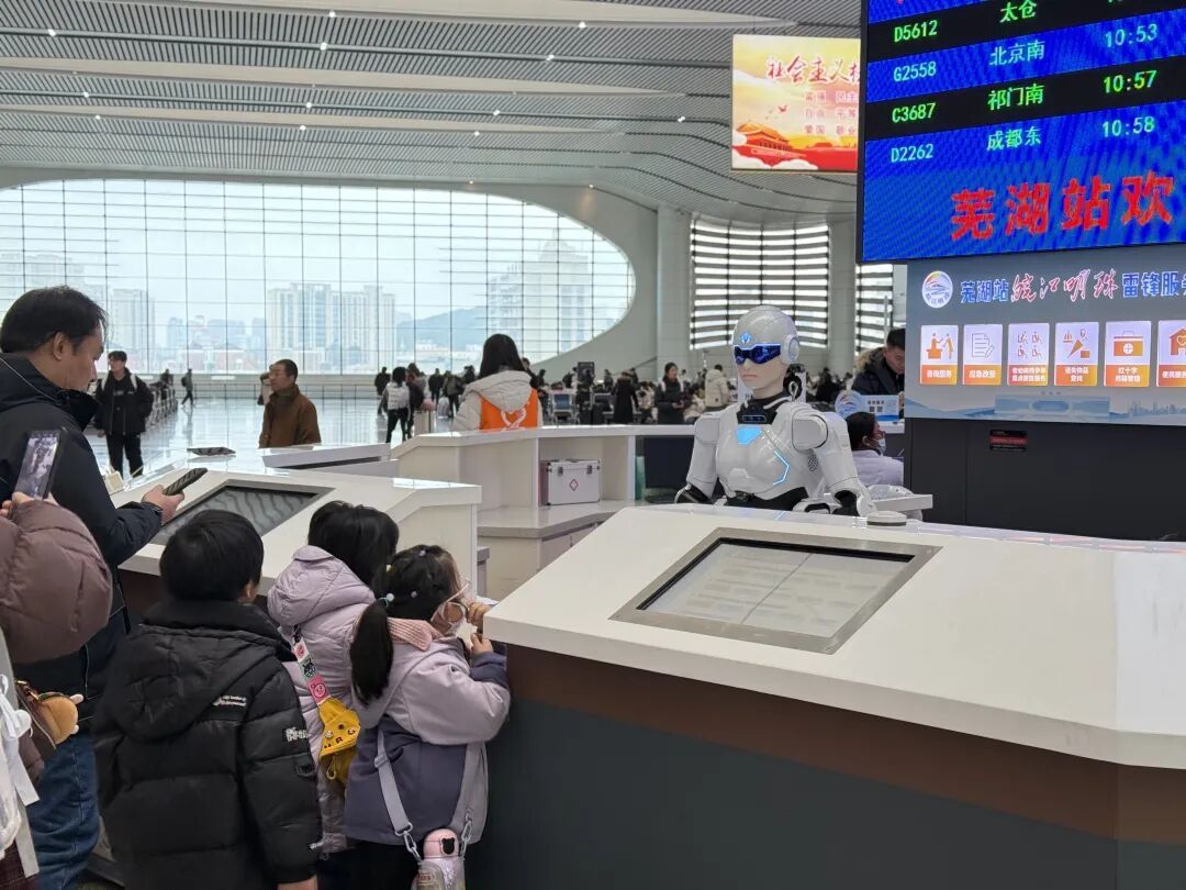 为做好假期旅客服务工作,上铁集团各客运站采取各项举措积极提升服务品质,努力满足旅客假日出行需要。合肥、南京、上海、杭州等城市的客运车站根据客流量动态调整进站流线,在关键区域增加人员值守,做好电梯、站台、进出站通道等人流集中场所的引导和安全防护。皖北多地迎来降雪,阜阳北站、淮南西站等组织干部职工24小时应急值守,对站场关键道岔实施定点保包清扫,采取喷洒防冻液、人工铲雪等方式防止设备冻结,同时对管内客运车站站台、楼梯、进出站口等重点区域扫雪除冰、撒盐融雪,铺设防滑地毯、设置防滑警示标识,循环播放雨雪天气安全提醒,确保旅客乘降安全。假日期间,芜湖站将两台机器人分别设置在 “皖江明珠”雷锋服务站和“两区一室”候车区,为旅客提供咨询、引导服务,为城市增添一道靓丽风景线。黄山、六安、常州、苏州、嘉兴、金华等地车站根据客流情况适时增开人工售票窗口,增加进出站口、售票厅、候车厅等处所客运人员力量,助力老人和“脱网”特殊群体无障碍出行。合肥、南京、上海、杭州客运段加强旅客上下车引导帮扶,列车配备医药箱、针线包、防护口罩、充电宝等用品提供给有需要的旅客,旅行途中做好降温寒潮霜冻等恶劣天气安全出行提醒。铁路电务、车辆单位重点抓好设备和列车的检修整治,确保设备良好和列车安全。