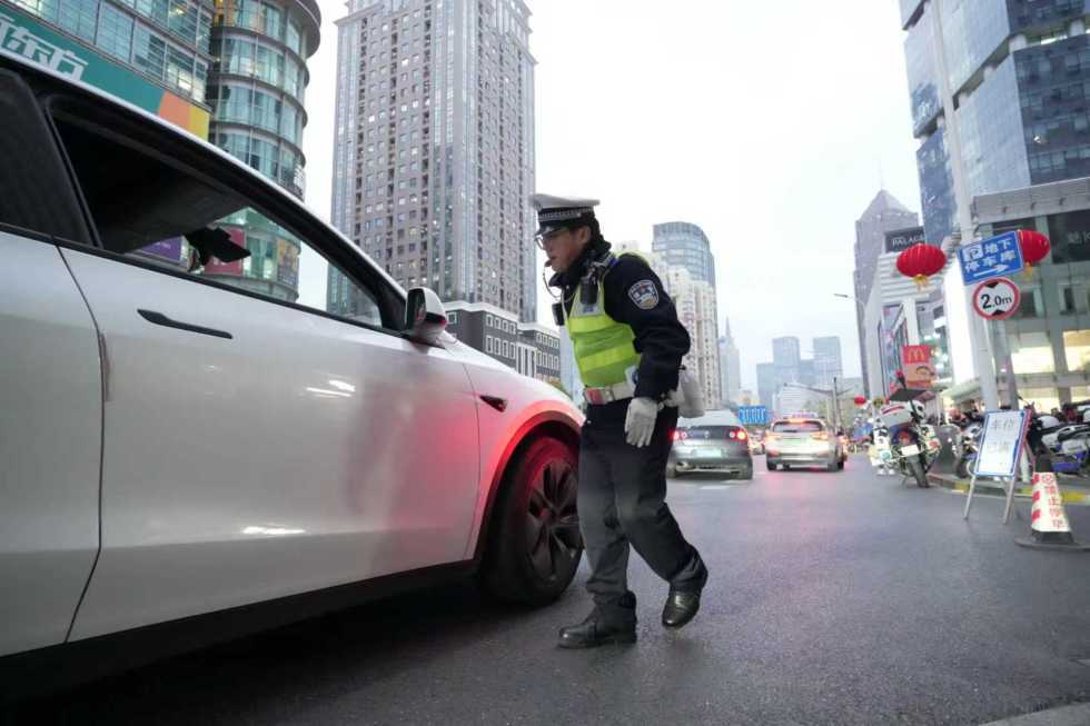 大客流意味着大车流,浦东交警提前构建起“定点疏导、铁骑巡控、视频巡查”三位一体的动态管控网络。在八佰伴周边重点路口,民警在岗上全力疏导。同时,铁骑队员高频往返于张杨路、浦东南路等主干道及各停车场衔接路段,主动发现、快速处置各类易致堵、易致乱的交通行为,确保区域通行始终平稳有序。