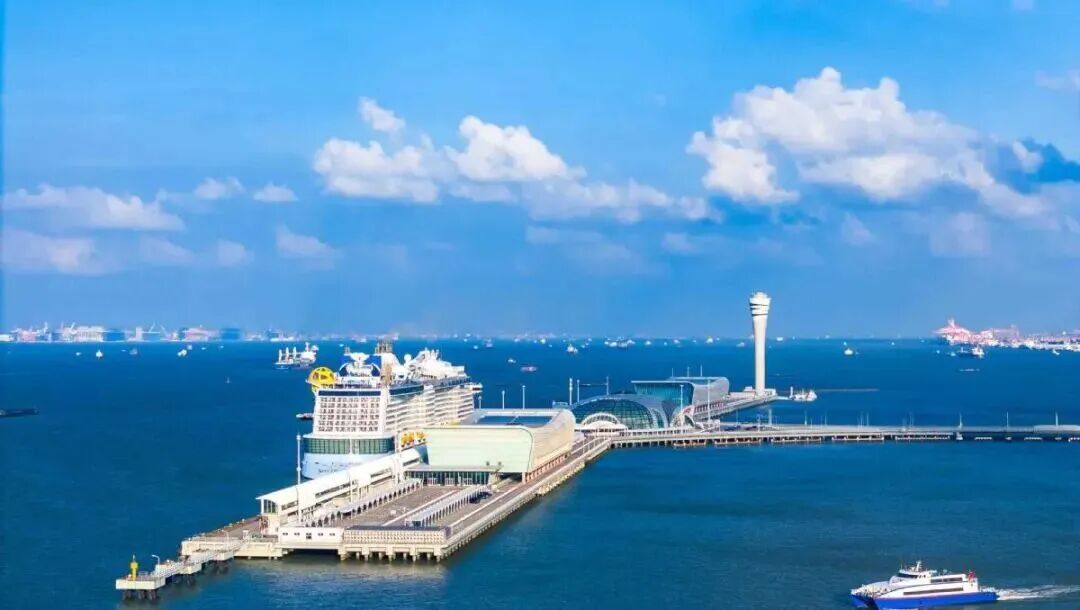 亚洲第一、全球第四大邮轮母港,银色的建筑立面,就像明亮的眼睛注视远方,被誉为“东方之睛,海上画卷”。