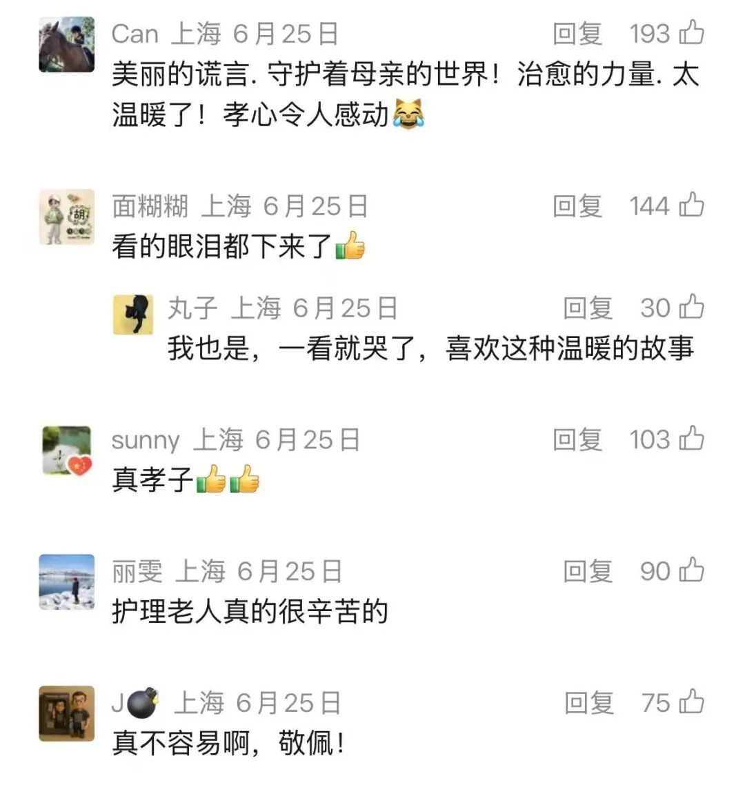 这些视频,也见证了母亲的真实变化。虽然卧床长达近8年,但老太太不仅未生一丝褥疮,甚至更为容光焕发。如果说,快乐是一座守护母亲的堡垒,抵御着病痛与衰老的冲击,那么这座堡垒的基石则是日复一日、事无巨细的悉心照料。