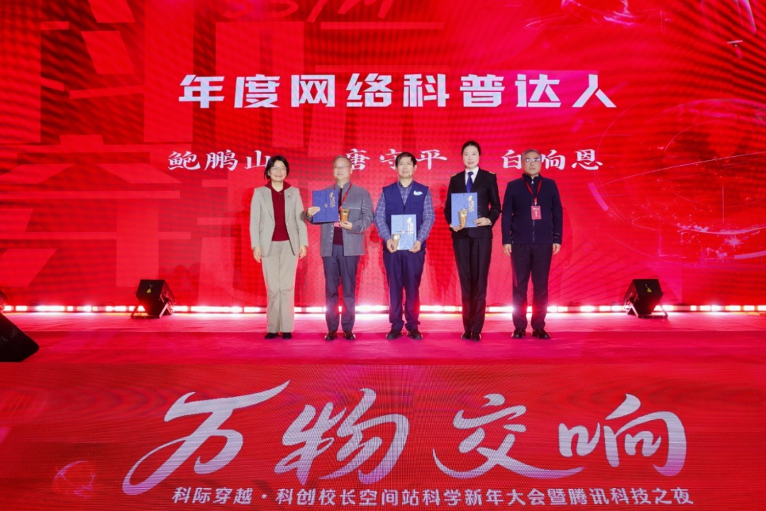 。鲍鹏山、唐守平、白响恩获得“年度网络科普达人”称号,他们用短视频、直播等新媒体形式,让科学走进千家万户。
