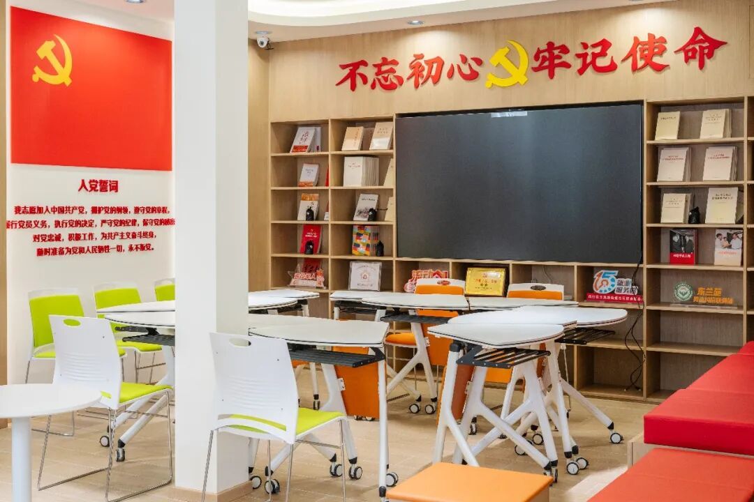 设有党员组织生活馆、“暖蜂有巢”服务角与办公区,作为政治引领与便民服务的主阵地,不仅是党员开展学习、锤炼党性的“初心站”,更是新就业群体“家门口”的温暖港湾。