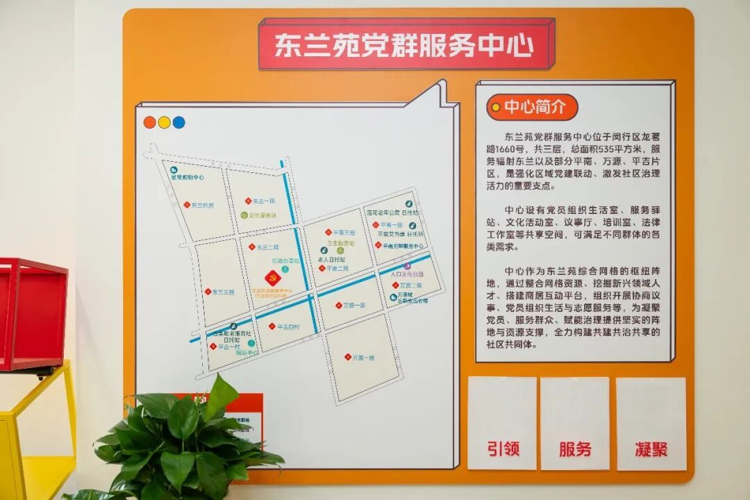 东兰苑党群服务中心位于闵行区龙茗路1660号,共三层,总面积为535平方米,服务覆盖东兰及部分平南、万源、平吉片区。中心以“强化区域党建、激活社区治理、服务党员群众”为宗旨,整合网格资源,搭建商居互动平台,常态化开展党员教育、协商议事、志愿服务、文体活动、法律咨询等服务,并特别设立“暖蜂有巢”服务点,为新就业群体提供暖心歇脚、充电续能、信息咨询等支持,全力构建有温度、有活力的社区共同体。