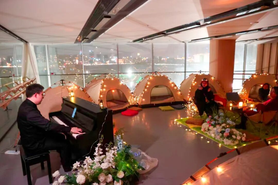 2025年12月31日深夜,黄浦江畔的西岸大剧院三楼排练厅暖意融融。十顶小帐篷沿厅环绕,中央的露营长桌与小椅错落摆放,摇曳的“烛光”与叮咚的钢琴声氤氲出别样的浪漫。一场融合后台探秘、助眠音乐会与迎日出的跨年活动在这里上演。 当天21时,中国原创音乐剧《锦衣卫》在西岸大剧院开演。不同于常规观演体验,剧院将演出时长延展至深夜,为观众打造了一场“剧场探秘之旅”。演出结束后,观众们跟随工作人员走进三楼排练厅,解锁剧院后台的“隐藏玩法”。 “西岸大剧院开放8个月来,已接待30多万名观众。这是我们陪观众度过的第一个新年,希望能够为他们送上独一无二的跨年体验。”西岸大剧院相关负责人介绍,活动设计了后台参观、助眠音乐会、帐篷夜宿等环节,观众可在温柔的琴声中放松身心,伴着江景入眠,次日凌晨再前往在水长廊,迎接2026年的第一缕阳光。 观众们在音乐和“烛光”的陪伴下等待新年到来 在排练厅内,钢琴师的指尖流淌出舒缓的旋律,德彪西的《月光》婉转悠扬,《遇见》《Remember Me》等经典影视金曲轻柔回响。“这是一场午夜的专属音乐会,选曲要贴合安静温柔的氛围。”钢琴师笑着说。窗外江风阵阵,室内琴声袅袅,观众们或坐在露营椅上闭目聆听,或钻进帐篷轻声交谈,惬意又自在。 跨年夜的西岸大剧院 据了解,本次活动的部分环节将被打造成标准化产品。剧院会结合不同演出,推出定制化的后台探秘之旅,让更多观众有机会走进幕后,了解舞台之外的故事。“剧院的大堂和在水长廊本就是对公众开放的空间,后台也可以成为艺术体验的延伸。”西岸大剧院相关负责人说,在节假日里,每天有数千人来到剧院的滨水空间打卡,剧院希望通过多元活动,让观众从“看演出的人”变成“剧院深度体验官”,深度感受艺术与江景交融的独特魅力。 观众们迎接江畔的新年第一缕晨光 当晨光熹微,观众们走出帐篷,沿着在水长廊眺望江面。新年的第一缕晨光洒在缓缓流淌的黄浦江上,也洒在每一张满怀期待的笑脸上。这场始于深夜的艺术之旅,在江风与晨光中定格成了难忘的跨年记忆。