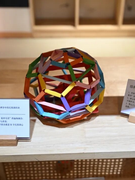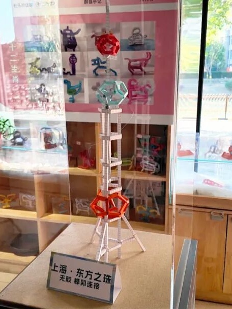 走进展厅,几何花、十二生肖、凉亭、玲珑球等作品惟妙惟肖,引得游客纷纷驻足。游客张姝惊叹道:“第一次见到这样的折纸方式。原本平面的纸,竟能变成立体的广州塔、东方明珠,太神奇了!”这种神奇的技艺名为“创意纸结构”,以纸张为载体,通过折叠剪裁与结构设计,在不使用粘胶的条件下实现承重、延伸、造型与实用功能,是一门融合艺术与科学的综合技艺。