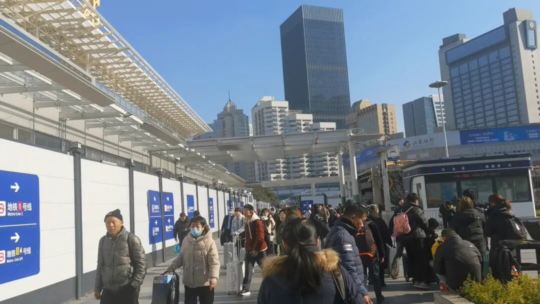 下午1点半,上海站南广场迎来了众多返程的旅客。随着一班又一班列车到达,提着大包小包的旅客有序出站。
