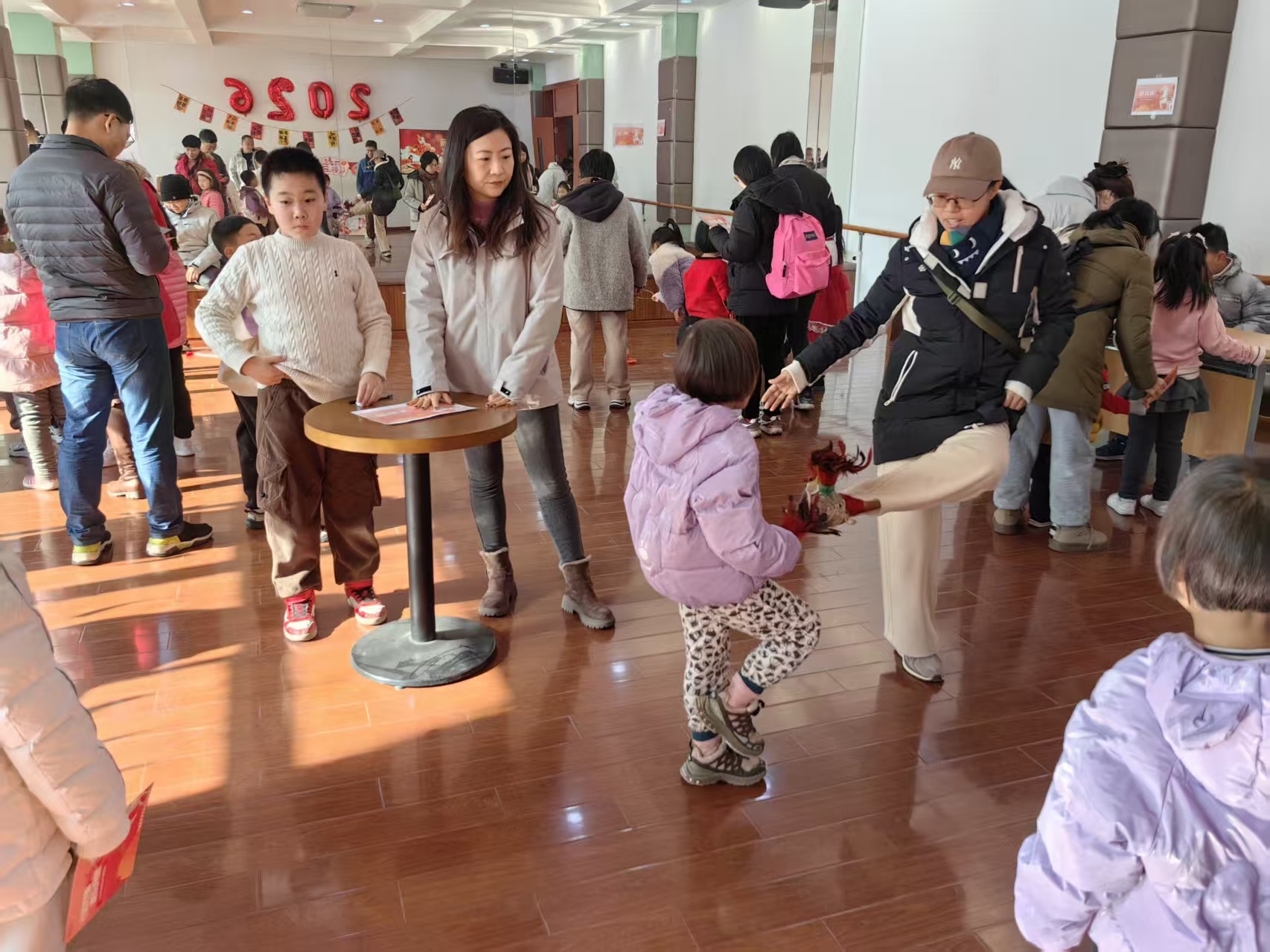 在元旦民俗分享后,大小朋友们手持集章卡,迅速融入各个游戏区。投壶区前,黄宇泽小朋友屏息凝神,将箭矢投入壶中的瞬间,周围响起一片鼓励的掌声。他兴奋地抹了抹额头的薄汗:“看起来简单,其实手腕要用巧劲。真是太有意思了!”