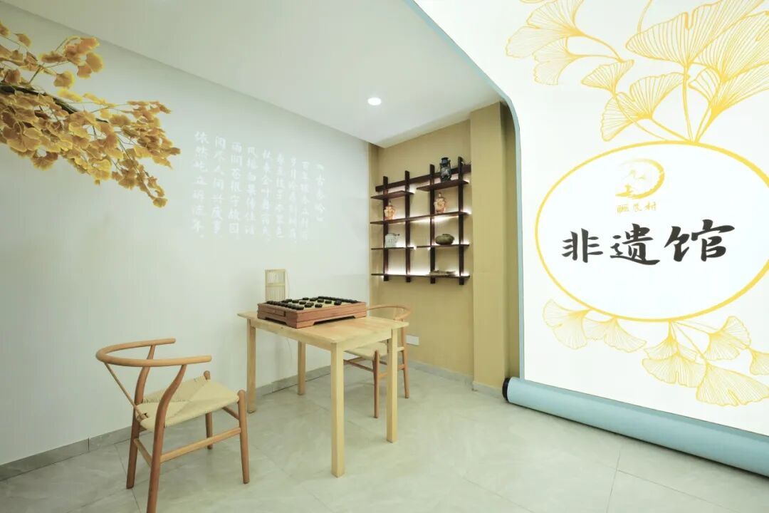 此外,场馆内专门开辟村民活动点,配备桌椅、书架、棋盘等,既是村民开展文化沙龙、读书分享、非遗研讨的专属空间,也是休息、竞技的重要场所,实现了“文化展示”与“村民实用”的双重价值。非遗馆的建设不仅深挖了村庄历史文化内涵、提升了文化附加值,更让古色古香的乡村底蕴转化为凝聚人心、吸引游客的文化动能。