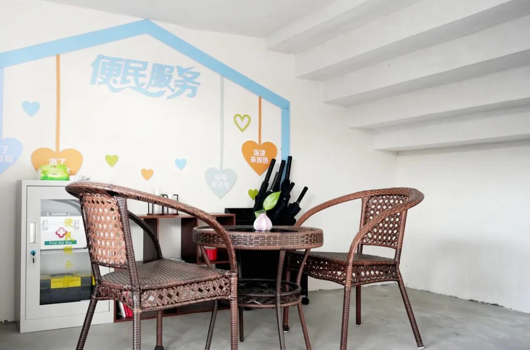 联农村坚持“民生无小事,枝叶总关情”,在非遗馆外设便民服务点——农家驿站,以精准化、人性化服务满足村民与游客的日常需求,让美丽乡村建设既有“颜值”更有“温度”。服务点聚焦“便民、利民、惠民”核心,打造“一站式”暖心服务平台,涵盖多项实用服务事项,切实解决群众的急难愁盼问题。在这里,无论是劳作间隙的村民,还是途经游玩的游客,累了可以坐下歇脚,渴了能免费饮用热水,手机没电时可随时充电,携带的饭菜凉了还能借助加热设备升温,各项服务贴合日常、直达人心。