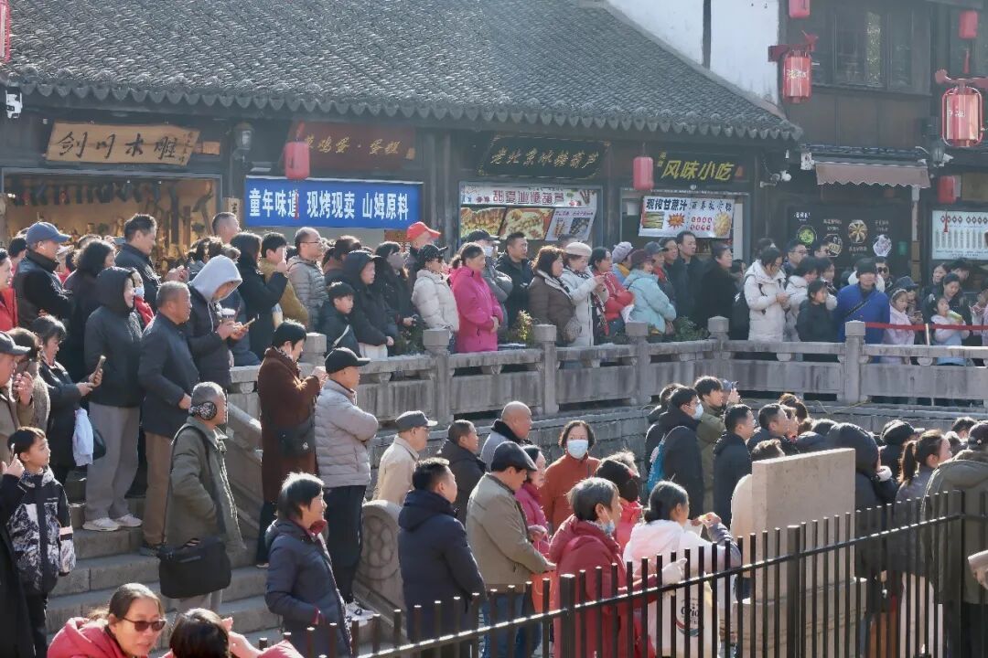 截至1月3日下午4点,元旦期间,南翔古镇景区累计接待市民游客约6.5万人次。“我们希望通过多元化、沉浸式的活动呈现,让市民游客在游古镇、品文化、赏夜景中,充分感受到海派文化与古镇烟火交融的独特魅力。”南翔古镇景区工作人员张艳表示。