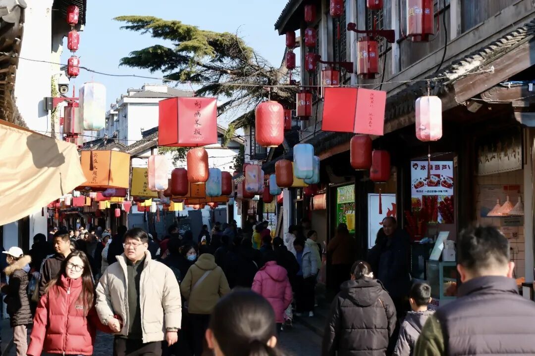 1月3日下午,南翔古镇上游人如织。古色古香的街巷间,各色花灯高高挂起,节日氛围浓厚。游客或品尝刚出炉的特色美食,或悠闲漫步拍照打卡,在热闹与从容之间,尽享美好的假日时光。