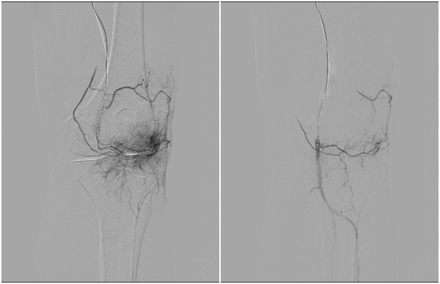 在普陀区中心医院介入科、疼痛科病区的走廊上,73岁的杨敏正扶着墙缓慢踱步。折磨她多年的右膝疼痛,已被一根细如发丝的导管化解。 “我膝盖疼了好多年,最近一年尤其严重。”杨敏说,多年来她试遍了各种方法,从贴膏药、针灸到注射玻璃酸钠,效果都不持久。“疼痛像影子一样跟着我,严重影响正常的生活。”抱着试一试的心态,她来到了普陀区中心医院就诊。 事实上,杨敏的病症处于保守治疗效果不佳,又没到换关节程度的阶段。而这样的患者在日常诊疗中并不是个例。“我国约有1.2亿膝关节疼痛患者,其中很大一部分人和杨敏一样,陷入了典型的‘治疗困境’。”普陀区中心医院介入科、疼痛科主任朱永强说,“通过影像可以发现,像杨敏这样的患者,其关节磨损程度尚未达到人工关节置换的手术指征。这就形成了一个‘治疗空窗期’——常规手段已无力,升级手术又过早或不必要。” 针对这一广泛存在的临床困境,一项前沿的微创介入技术——膝动脉栓塞术(GAE)成为精准“填补”保守治疗与外科手术之间空白的“利器”,为这类患者提供了治疗的新选择。 介入治疗 膝动脉栓塞术(GAE)是一项针对膝关节骨关节炎疼痛的微创介入治疗技术。该技术基于对骨关节炎病理机制的新认识,疼痛不仅源于关节磨损,更与关节内滑膜炎症、异常血管增生及神经分布密切相关。医生在影像设备引导下,通过穿刺将纤细的导管精准送至膝关节周围异常的动脉分支,注入微小的栓塞颗粒。这些颗粒会选择性阻断为病变滑膜供血的异常血管网络,从而从根源上抑制炎症、减少痛觉神经刺激,达到缓解疼痛、改善关节功能的目的。 “我们通过在患者大腿根部的微小穿刺点,将导管送至膝关节的病变血管处。”朱永强指着显示屏上的影像说,病变血管网络在影像下会呈现为异常染色的“云雾状”区域,这些就是炎症的根源。他们通过栓塞精准切断异常血管的血供,从源头消除炎症。 术前左膝关节造影可见异常染色(左图)栓塞后异常染色消失(右图) “与传统治疗相比,关节动脉栓塞术优势在于,可以从源头上通过血管途径消除炎症,从而达到‘治本’目的。”朱永强表示,该治疗方式的费用远低于关节置换手术。更重要的是,这个技术可以重复进行,为患者保留了后续治疗的选择。 事实上,这项技术不仅适用于膝关节骨关节炎相关疼痛,对肩周炎等关节慢性劳损引发的疼痛也有良好效果。“我们正致力于在全国推广这项技术,希望能为更多疼痛患者带来希望。”朱永强表示。 该技术主要适用于: 1. 经规范保守治疗(如药物、理疗等)3-6个月以上,效果仍不理想的患者; 2. 疼痛程度为中重度,已明显影响日常生活的患者; 3. 影像学检查显示关节退变程度为轻中度的患者; 4. 因年龄、身体状况或个人意愿等原因,暂不适合或不愿接受膝关节置换手术的患者。 【门诊时间】 专家门诊:周一上午 特需门诊:周四上午 记者:易雯 编辑:戴琳 点击下方了解更多 新年迎新居,普陀“好房子”开启“暖居”新生活 新年启新程!TOP中央公园迎新游园会热闹开启 首发首秀、潮流快闪、网红餐厅元旦假期齐上阵!普陀这里成为Z世代狂欢场→ 【活动】带娃探秘《阿土的小狮子》,一起聆听绘本里的百年匠心 【党建引领物业治理】选对人、用对招,祥和家园居民区打破业委会“管事难”困境