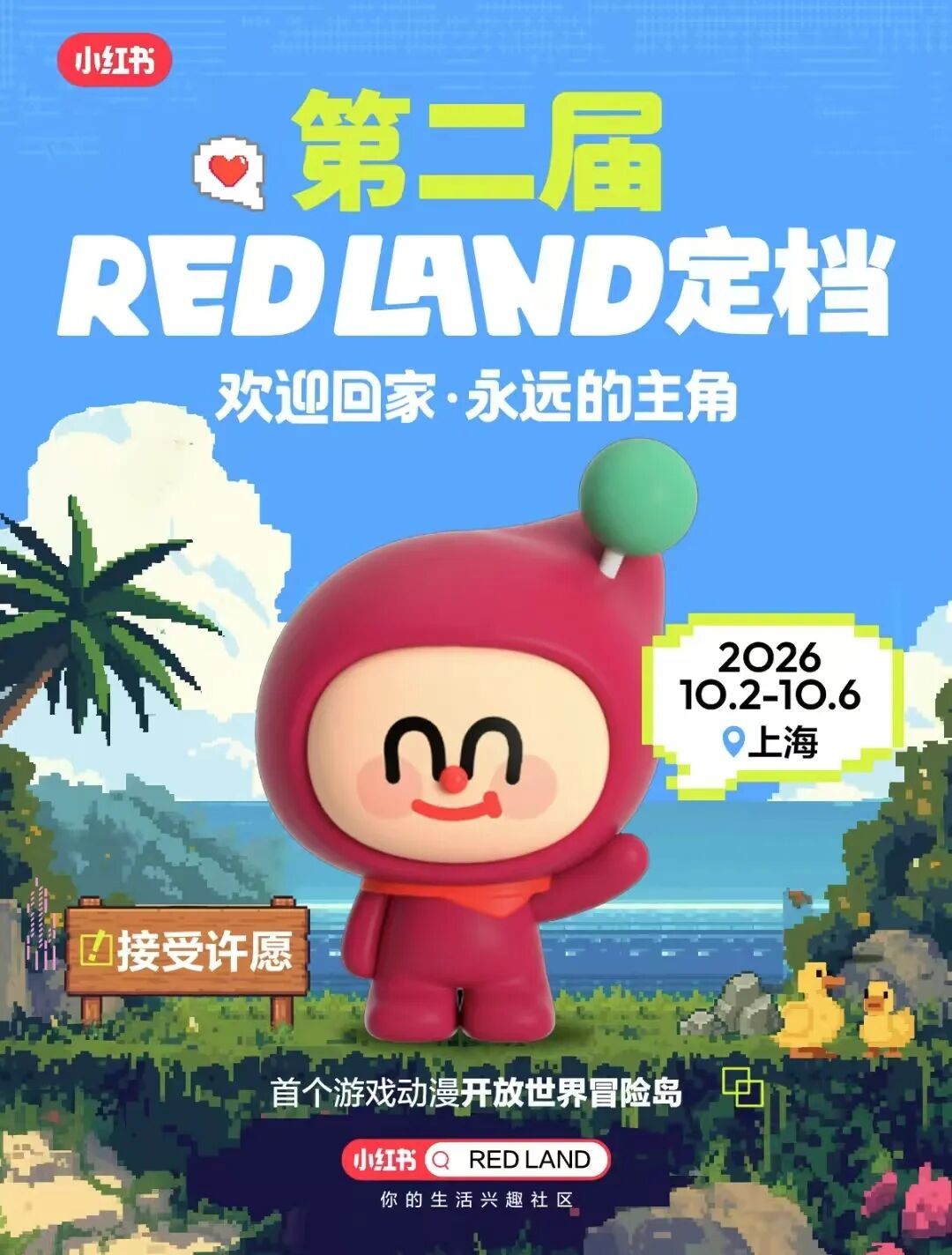 2026年元旦,小红书REDLAND开放世界冒险岛官方正式宣布,第二届REDLAND活动正式定档2026年10月2日至10月6日。对比去年第一届活动,此次活动从盛夏放到了更为凉爽的国庆黄金周,时间也从去年的3天扩充至5天,更为关键的是,与首届仅3个月的仓促筹备形成鲜明对比,本届活动自官宣之日起便拥有长达10个月的筹备周期,意味着活动主办方能更精心地打磨每一处细节,从内容策划到现场体验,从技术保障到服务流程,都将得到更为扎实、充分的准备,旨在呈现一个完成度与惊喜感都全面进化的开放世界。