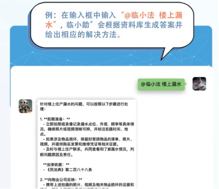 除了方案参考,“临小助”现在还是个经验丰富的“调解专家”。今年新增的“临小法”模块,把16类社区高频纠纷梳理得明明白白,不仅有处理流程,还有鲜活的案例可以参考。“现在我们处理类似矛盾时,心里更有底了——这可真是个会‘举一反三’的好帮手!”