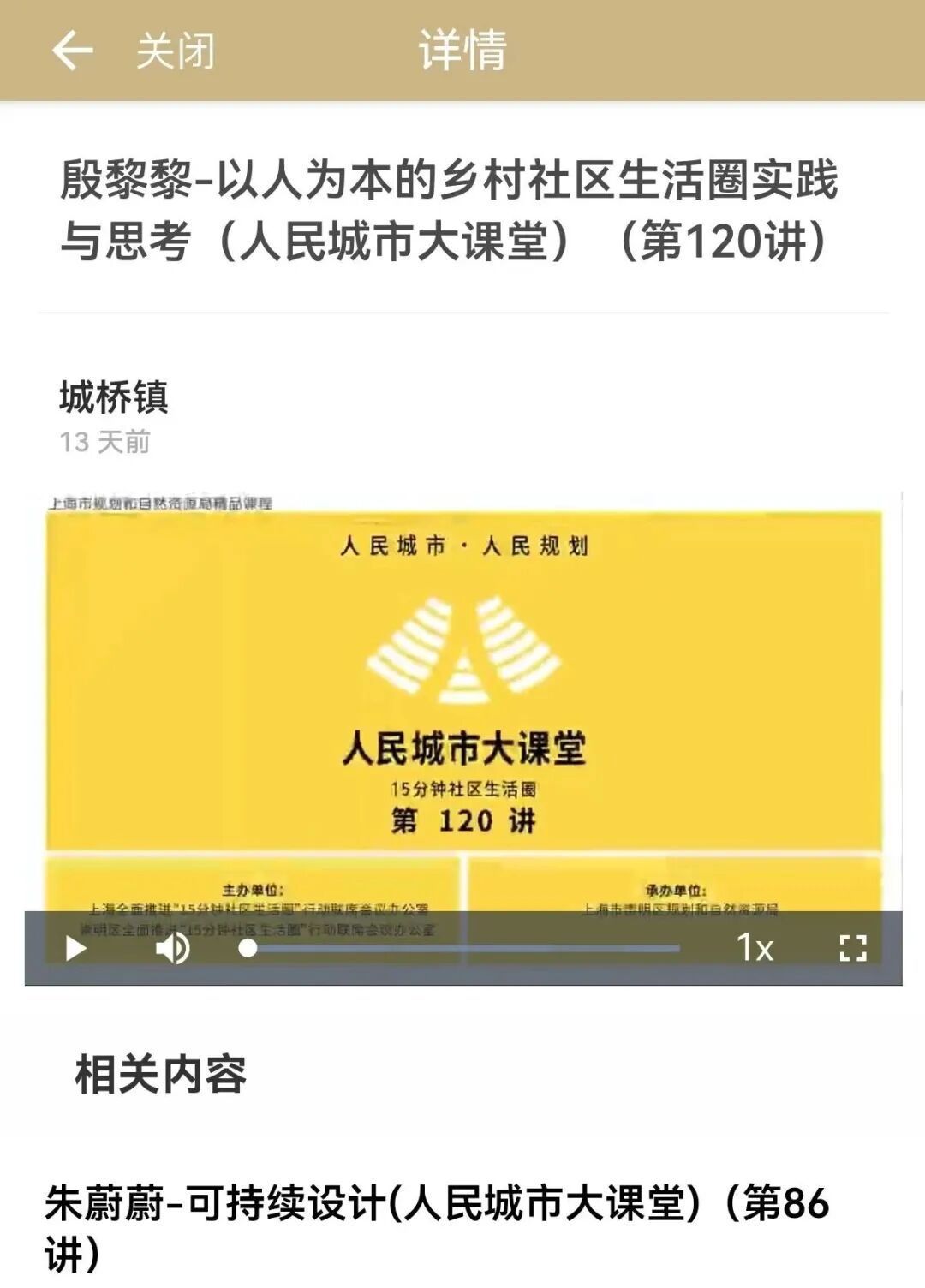 ◆人民城市课堂:随时回看往期课程内容,学习充电更方便。