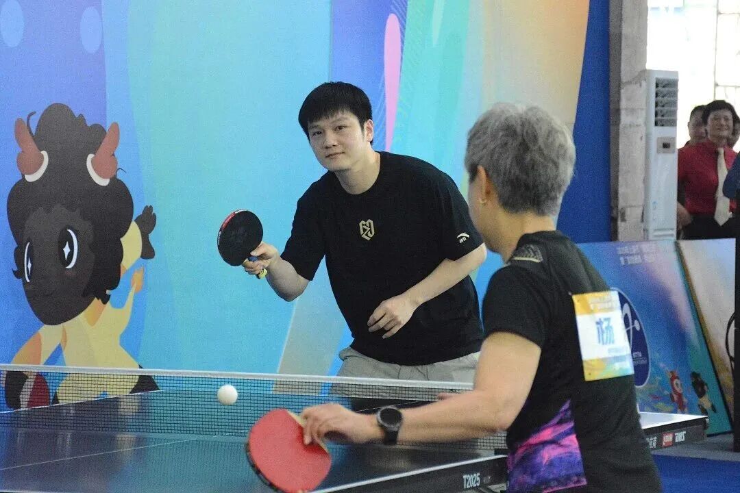 活动现场,樊振东不仅展示了高超的球技,还耐心地指导市民爱好者们如何改进动作、提升技巧。他的亲和力和专业精神赢得了现场观众的阵阵掌声和喝彩。“能和樊振东这样的世界冠军一起打球,真是太幸运了!”一位市民爱好者激动地说,“这不仅让我学到了很多,也让我更加热爱乒乓球这项运动了。”通过互动,樊振东也感慨:“刚刚和大家一起打球,让我感受到每个人都很快乐,我想这是面对体育最好的方式。”在樊振东的带动下,越来越多的市民开始关注并参与到乒乓球运动中来,复兴岛也因此变得更加兴旺和充满活力。