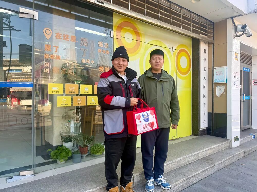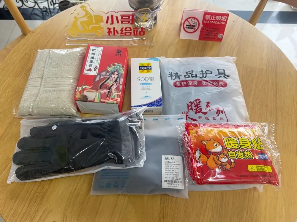 近日,张堰镇东风居委会户外职工爱心接力站的工作人员为快递员送上了一份“暖冬礼物”,里面包含了护具、手套、暖贴、护手霜、姜茶等,传递满满暖心关怀。这是金山工会开展的“冬送温暖”慰问活动,其中为张堰镇配送36份礼包,分别投放在6处爱心驿站。