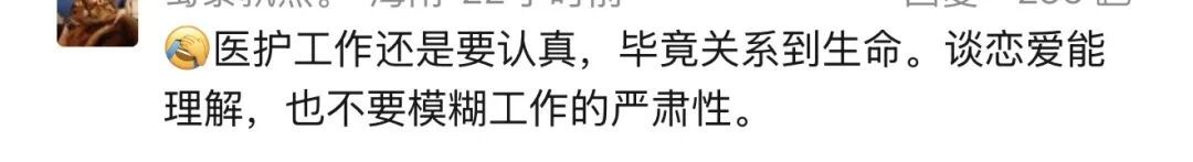 ◼对此,不少网友指责该护士将医疗场所当作“秀恩爱”舞台,将患者生命安全视为儿戏。