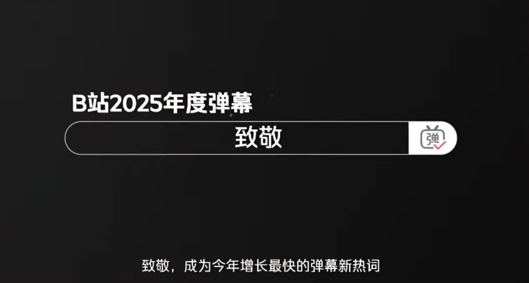 日前,哔哩哔哩(以下简称:B站)官宣2025年度弹幕,“致敬”以超2282万次的发送量当选,发送用户超459万人,其中80%为00后。不搞抽象,不造新词,作为年轻用户、年轻创作者聚集的平台,“致敬”能够成为B站2025年增长最快的弹幕热词引人深思。