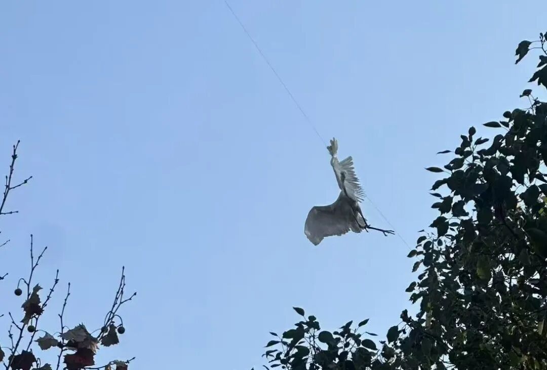 近日,上海汽车博览公园工作人员在巡逻时发现,大树的枝杈间,一只白鹭被线死死缠住,正剧烈挣扎。