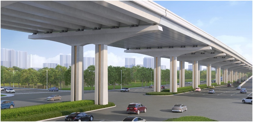 外环东段交通功能提升工程南起华夏中路,北至龙东大道,全长约4.0公里,采用主线高架双向8车道快速路+地面双向6车道主干路标准建设,同步新建2对上下匝道、改造4条立交匝道。