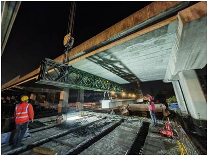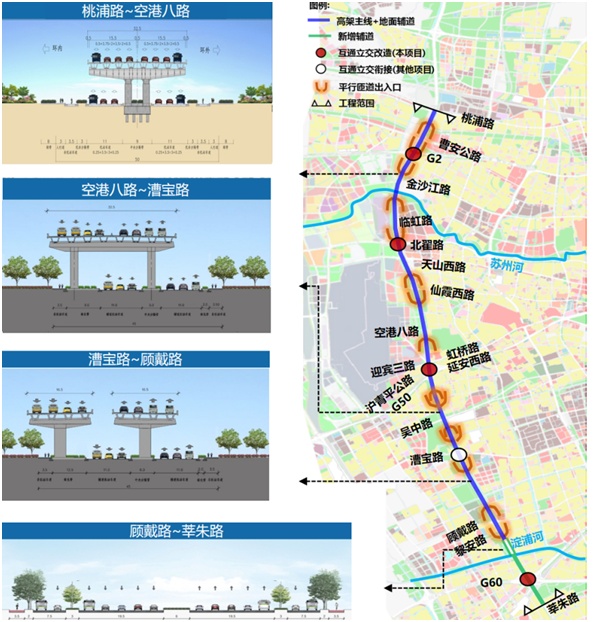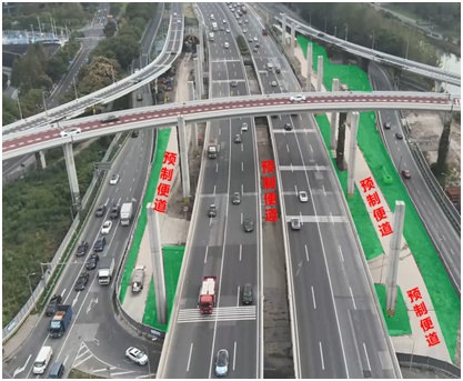 目前,保通道路完成约15km,主线桥梁下部结构施工全面铺开。其中,外环桃浦路横向地面桥新建完成、莘庄立交节点上跨国铁和地铁桥梁下部结构完成。