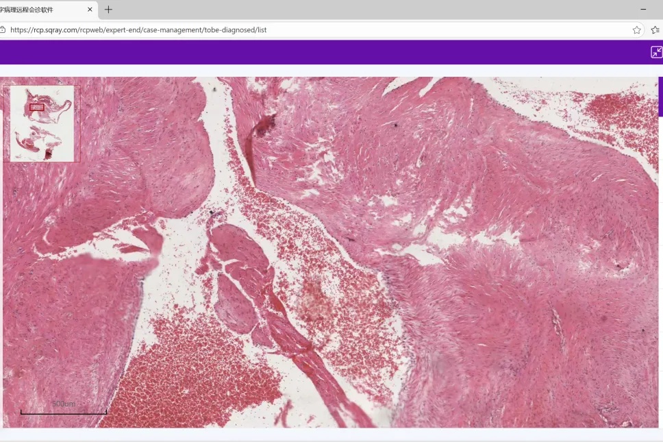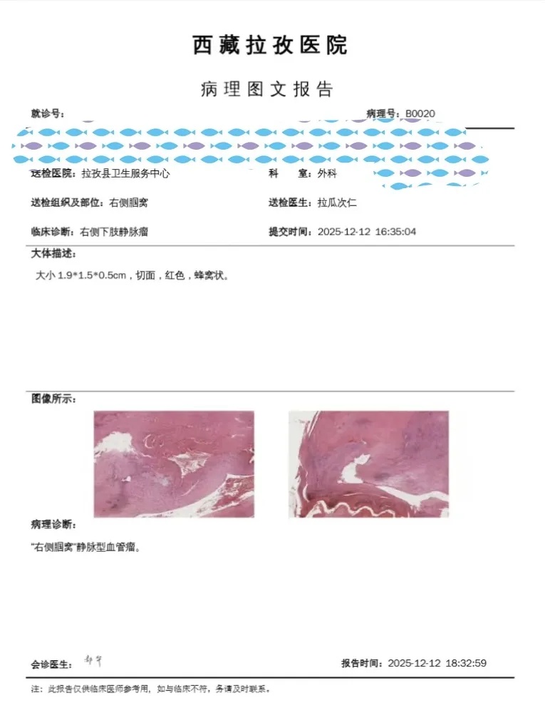 当米玛确巴主任团队将染色后的病理切片数字化上传后,远在上海的杨浦区中心医院病理科郝华主任迅速收到了高清数字切片,迅速展开专业研判,快速明确肿瘤类型、分化程度及切除边界情况,并在第一时间出具明确诊断报告,实时传输至拉孜手术现场。