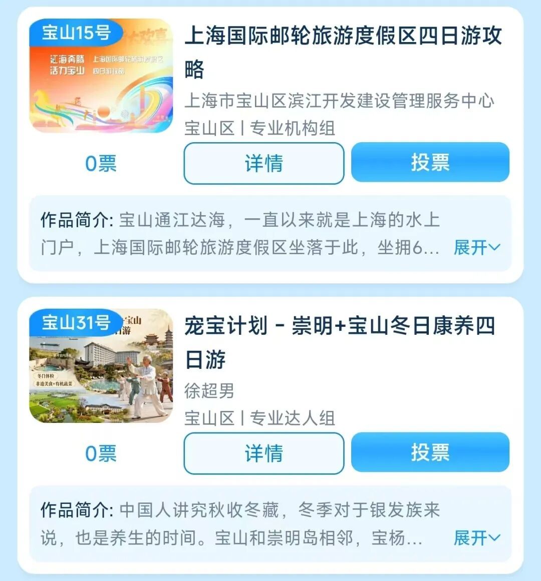 在本次大赛中,宝山区共有8个攻略作品入选,您宝贵的投票将助力它们脱颖而出,立即行动起来吧!