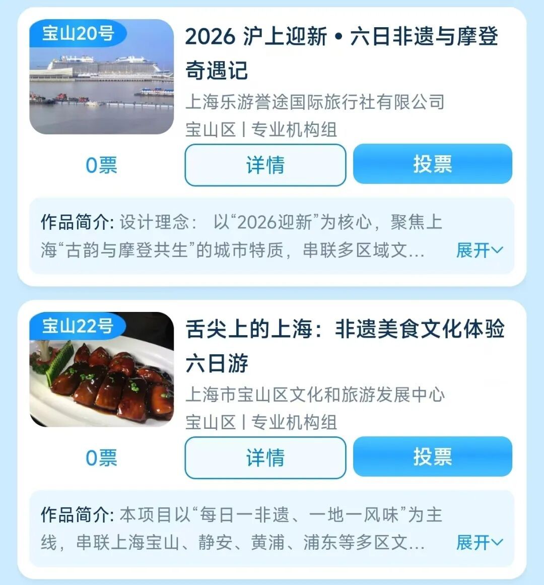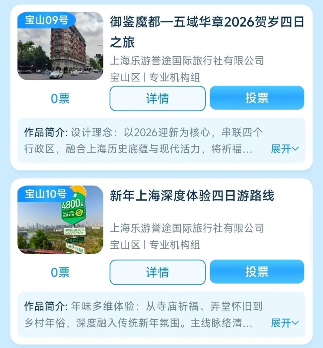 2026年1月1日00:00时至1月6日24:00时,登录“沪小游”微信小程序或上观新闻APP,进入【旅超】页面,即可进行投票!