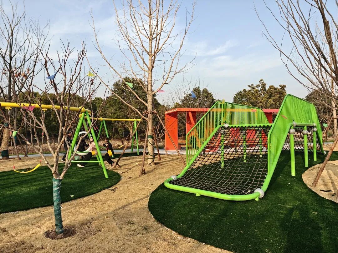园内设有千米花溪、粉黛花坡、林丘栈道、童趣乐园等多处景点,植物配置突出“大美、通透、多彩”特色,为周边居民提供一处休闲漫步、交流互动、娱乐康体的绿色开放共享空间。