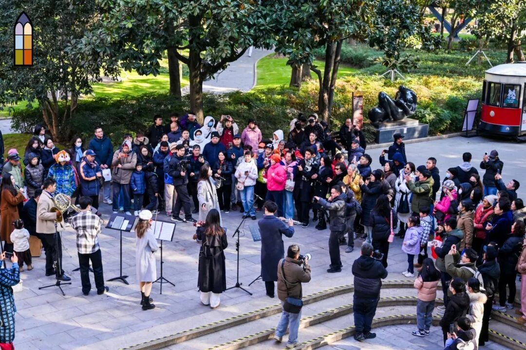 元旦假期,“徐家汇源・都市交响2026年元旦音乐快闪”让公众在“露天音乐厅”中感受中西融合的音乐魅力。