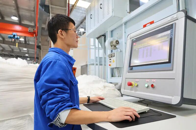 近日,位于枫泾工业园区的上海金熊造纸网毯有限公司生产车间内,机器轰鸣声不绝于耳。只见生产线上滚轮转动,工人们正加紧赶制一批总额达6000多万元的国际头部企业订单。车间北侧,最新引进的14.5米生产线格外引人注目,这是目前国际领先的造纸网毯生产线,其正式投用成功填补了技术空白,标志着我国在高端造纸网毯领域实现重大突破。
