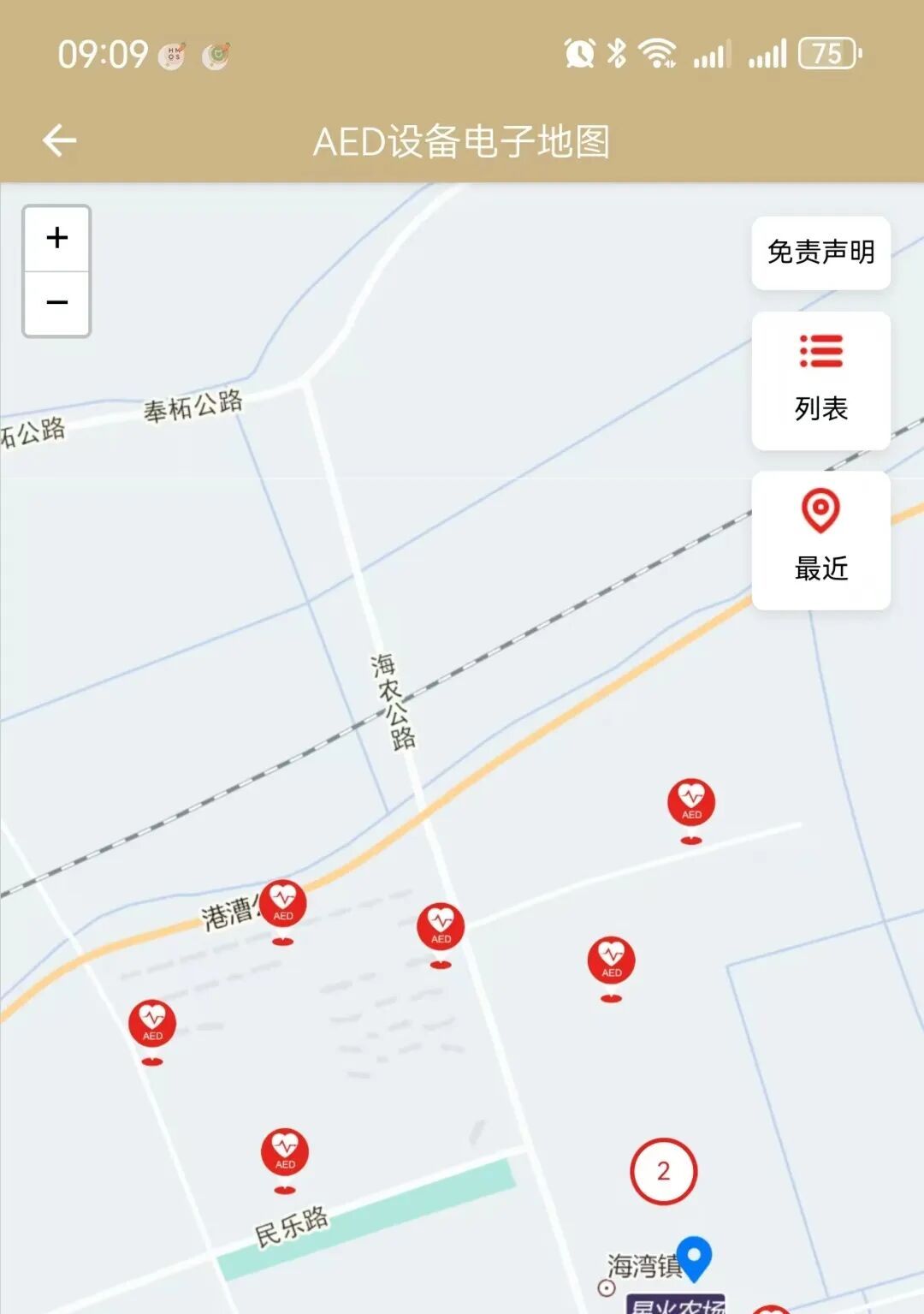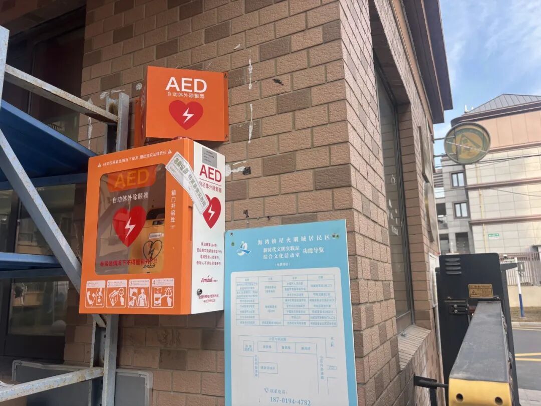 2025年,海湾镇将这份守护,化作了19处具体而明亮的坐标。在常住人口超千人的小区,橙色的AED标识清晰醒目,24小时静候,永不“打烊”。每一台设备都已接入“随申办”AED电子地图,居民们只需打开手机,点亮定位,周边的AED便一目了然——让寻找救命设备的时间,从茫然奔走缩短为一次指尖轻触。