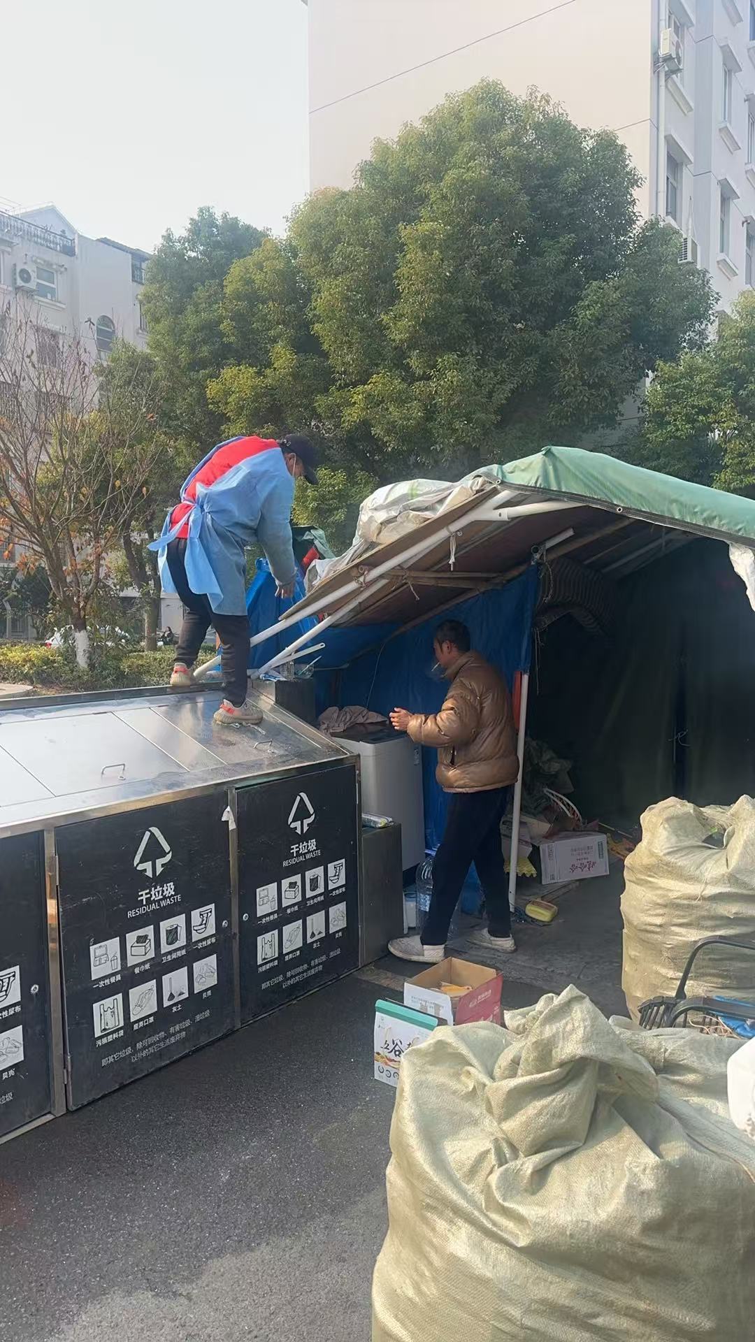静安区彭浦镇白遗桥居民区永灵小区北门,一处本应为落实垃圾分类要求而建设垃圾厢房的点位,因条件所限,推进困难重重。多年来,两个破旧的油布帐篷成了临时替代,也逐渐成为影响环境与居民心情的“堵点”。“每次路过都觉得碍眼”“夏天味道特别重,窗户都不敢开”……面对居民强烈的改善呼声,居民区党总支引领“三驾马车”协力攻坚,最终,帐篷被拆除,桶具找到了规范的“家”,老旧垃圾点实现“逆袭”,小区门口重归整洁清爽。