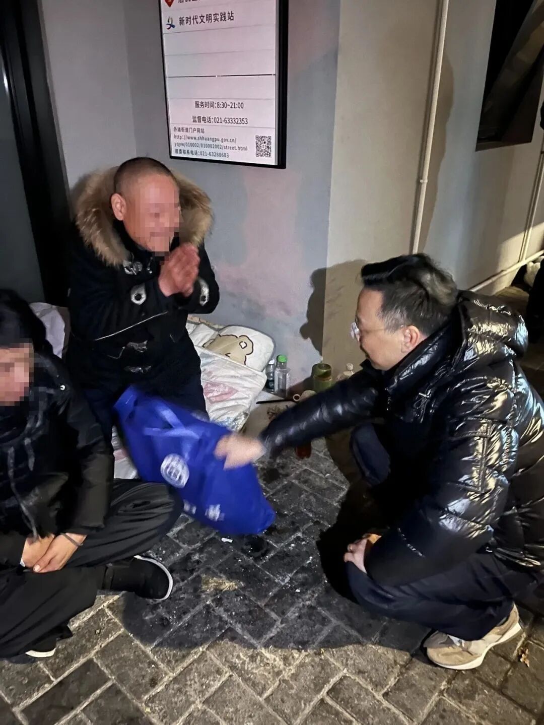 元旦假期期间,黄浦区民政、公安、城管部门联合开展行动,聚焦重点区域展开全面巡查救助。工作人员深入延安高架黄浦段沿线、桥梁涵洞、公园绿地、重点商圈等流浪乞讨和临时务工人员易聚集的场所。在巡查过程中,共发现9名流浪露宿和临时遇困人员。工作人员秉持“自愿求助、无偿救助”的原则,积极劝导他们进站接受救助,其中2人被成功劝导进站。对于坚持不愿进站的人员,工作人员为他们提供了食品以及御寒的被褥、衣物,并留下印有黄浦区救助管理站地址和电话的“爱心服务卡”。