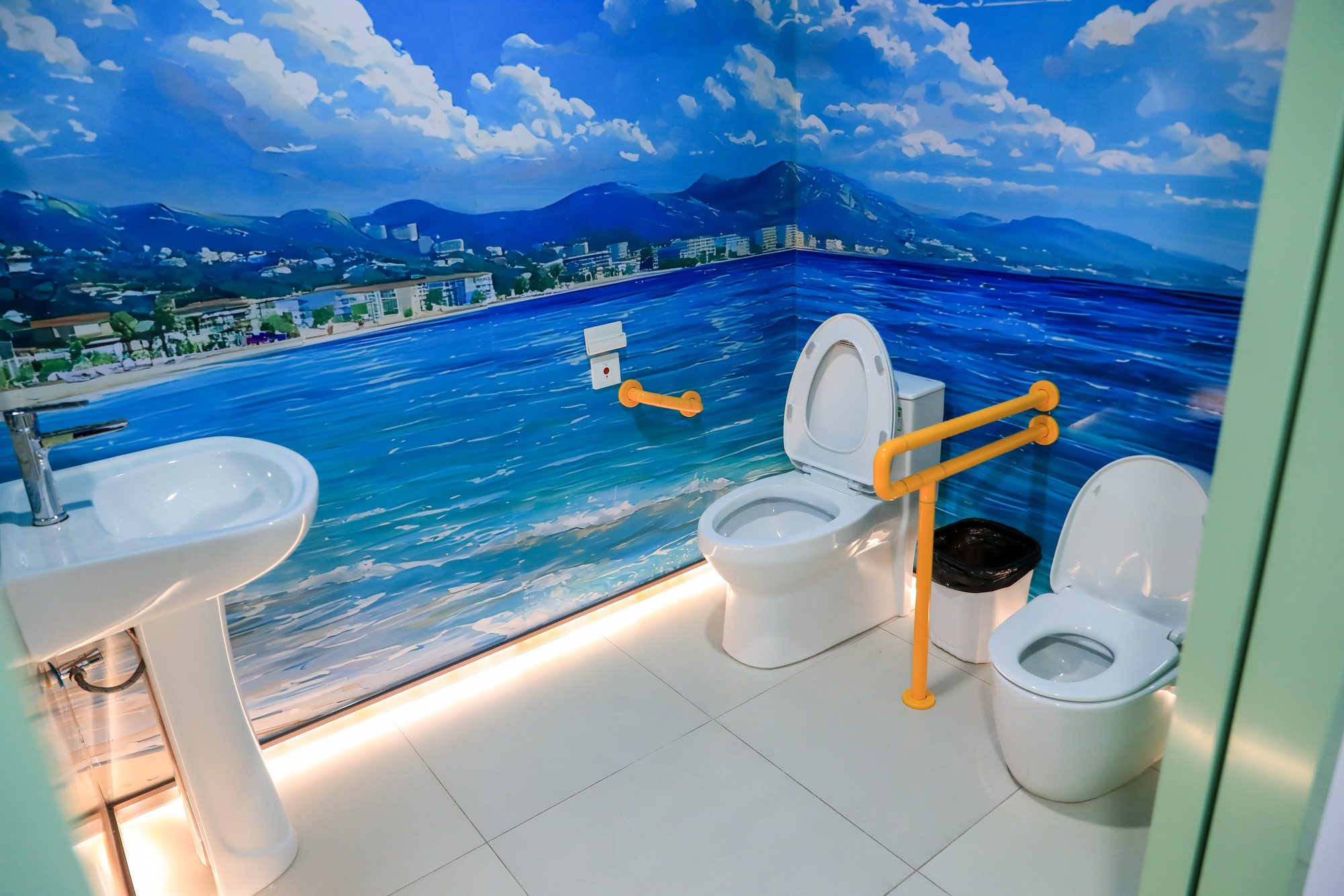 考虑到残疾人、老年人以及家庭游客的特殊需求,管理方特意邀请区残联提供专业指导,卫生间里配齐了符合国家标准的专用扶手,装好了低位紧急呼叫按钮,空间布局也经过精心测算,能满足轮椅360度灵活回转,入口更是实现无高差通行,让特殊群体出行更安心。
