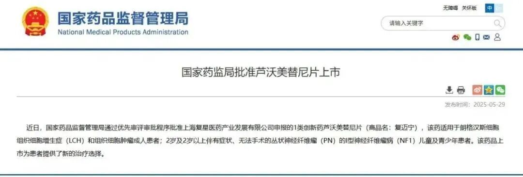 该药适用于朗格汉斯细胞组织细胞增生症(LCH)和组织细胞肿瘤成人患者;2岁及2岁以上伴有症状、无法手术的丛状神经纤维瘤(PN)的I型神经纤维瘤病(NF1)儿童及青少年患者。这款罕见病治疗药物的上市为患者提供了新的治疗选择。