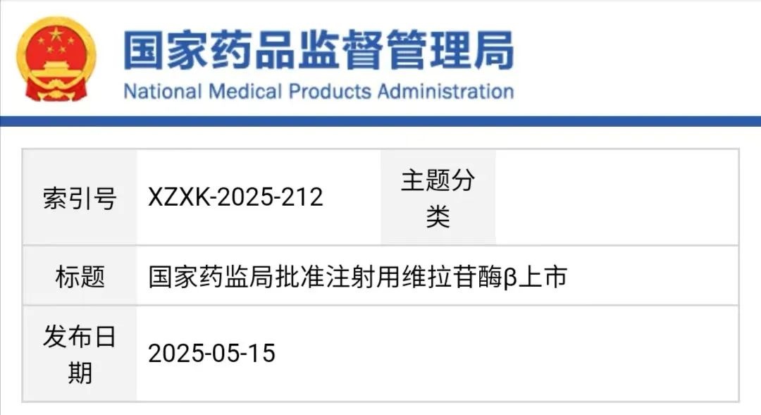 戈谢病是一种因溶酶体中葡萄糖脑苷脂酶功能缺陷导致的常染色体隐性遗传代谢病,被纳入《第一批罕见病目录》。注射用维拉苷酶β能减少葡萄糖脑苷脂在体内的贮积,从而发挥治疗作用。该品种的上市为相关患者提供了新的治疗选择。