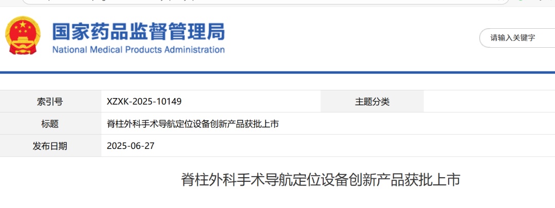 该产品由机械臂系统、台车、手术辅助套件和附件组成,适用于成人脊柱外科手术过程中手术器械和植入物的导航定位。