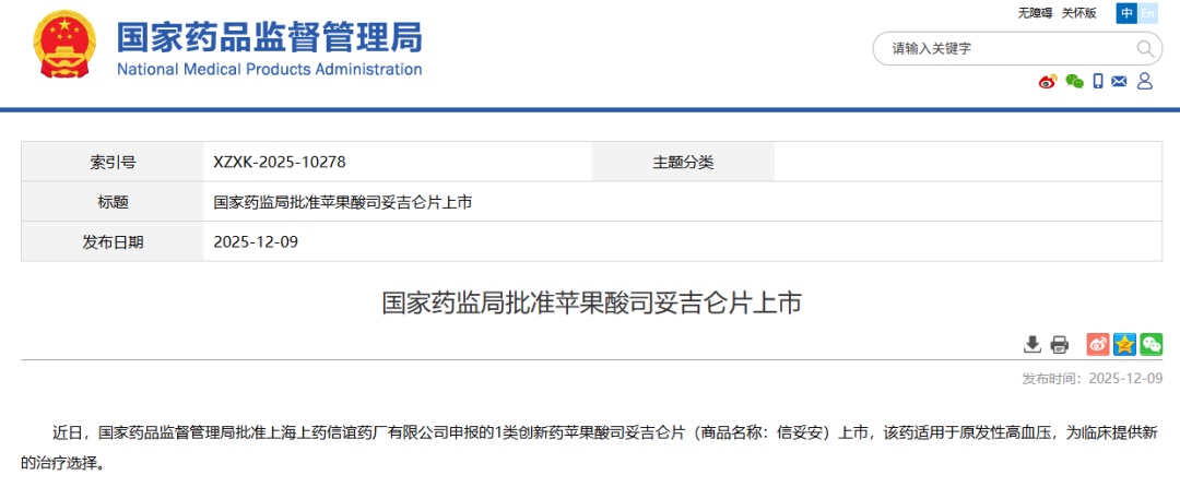 司妥吉仑作为新一代口服非肽类小分子肾素抑制剂,在研发之初便瞄准临床未被满足的需求,致力于开发一款口服有效、具有良好的安全性特征的新型降压药。作为治疗全球高血压疾病的“同类最优”,苹果酸司妥吉仑片获批上市后,为国内超3亿原发性高血压患者带来全新治疗选择。
