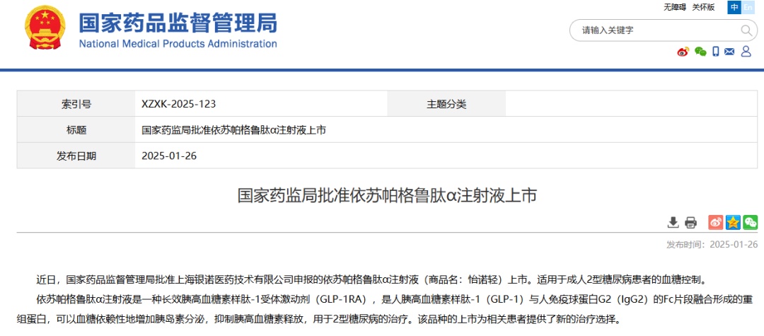 这是全球第四款、我国首款原研上市的人源长效GLP-1(胰高血糖素样肽-1)受体激动剂,在治疗糖尿病、肥胖、脂肪肝等慢性代谢性疾病方面,已表现出人源长效GLP-1药物的显著优势,有望在全球市场展现中国创新药的竞争力。