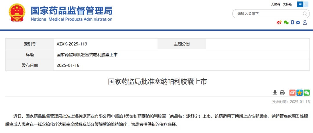 作为今年上海第一款创新药获批上市,用于国际妇产科联盟(“FIGO”)III-IV期上皮性卵巢癌、输卵管癌或原发性腹膜癌患者在一线含铂化疗达到完全或部分缓解后的维持治疗。