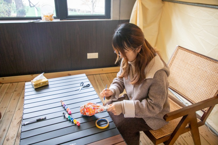 最后收尾,系上清脆的铜铃,坠好飘逸的红流苏。轻轻一提,铜铃叮当作响,暖光从宣纸里缓缓透出来,裹着彩色的鳞片在暖光里晃悠,竟真如同一尾活灵活现的鱼,在露营区的暖篷里悠然游弋。小寒的冷意,仿佛都被这盏手作鱼灯的暖意驱散,只余下指尖的温软与心间的欢喜。